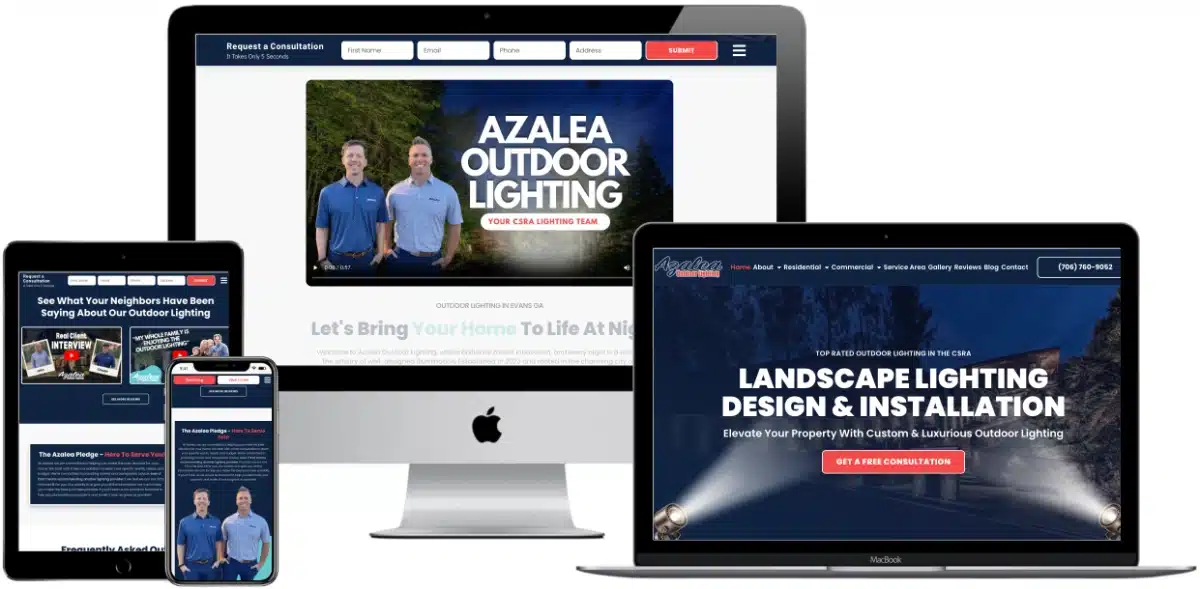 For Azalea Outdoor Lighting, 180 Sites designed a digital experience that glows with the same elegance and precision as their lighting installations. Led by Chase Lord, Azalea transforms homes and businesses across the CSRA into luxurious nightime displays and their website needed to capture that magic. We created a visually striking, conversion-focused site that blends sophistication with warmth, showcasing their architectural, landscape, and holiday lighting services through stunning imagery and smooth navigation. The tone is luxurious yet approachable, positioning Azalea as the region’s premier outdoor lighting company. Much like their work, the site was crafted to highlight beauty through balance, every detail intentional, every interaction illuminating. At 180 Sites, we don’t just brighten screens; we build digital experiences that help exceptional brands like Azalea shine long after the sun goes down.