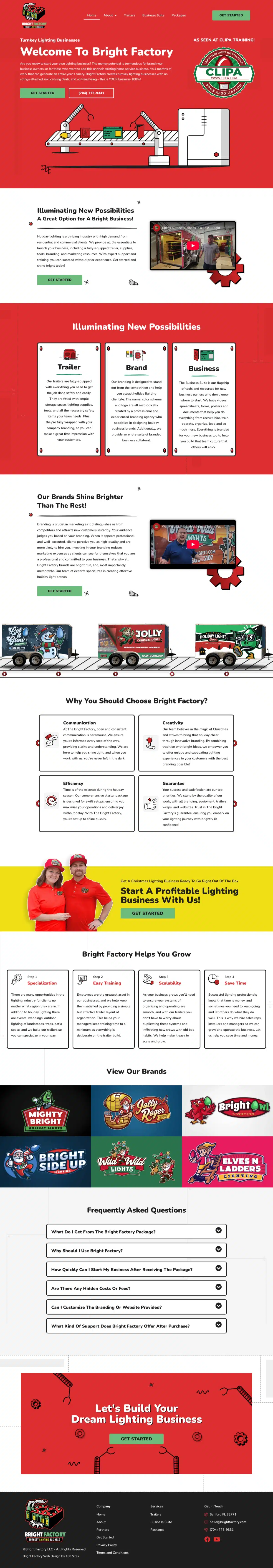 When Adam from Bright Factory needed a website that could light up the Christmas lighting industry, we flipped the switch and lit up his company's online presence. The Bright Factory is like Santa’s workshop for businesses, creating a business-in-a-box solution that has never been seen before in the Christmas lighting industry. For anyone looking to get into the Christmas lighting industry, Bright Factory can assemble a business for you in record time and get you on your way to installing Christmas lights immediately. We designed a site that’s as twinkling and magical as the season itself, making it a beacon for new clients of the Bright Factory. With comprehensive packages that include branding, a fully loaded trailer, equipment, training, and marketing services, the new site showcases everything needed to start a successful lighting business. Now, The Bright Factory has an online presence that’s merry and bright, helping them shine in the industry and spread the holiday spirit year-round to anyone throughout the country looking to add more revenue in the winter months of their home service company.
