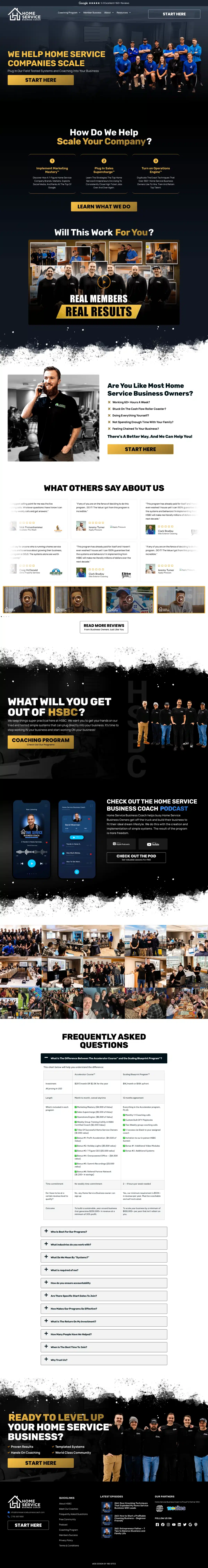 When Home Service Business Coach needed a new and improved website to boost their mission of empowering home service entrepreneurs, we crafted a dynamic and supportive digital hub for their coaches and students. Designed to be visually appealing and resource-rich, the site mirrors its community-driven, high-impact approach. With an intuitive layout and engaging content, it highlights their tailored solutions, from a free business community to accelerated growth programs. The site showcases their proven track record of helping business owners increase revenue and profit as well as a knowledge hub to showcase hundreds of their podcast episodes. Now, Home Service Business Coach has an online platform that drives forward their mission of helping small business owners grow their profits and gain time and freedom in their entrepreneurial lives.