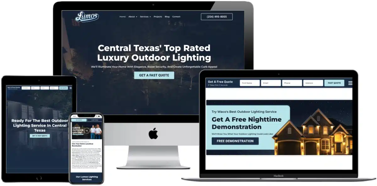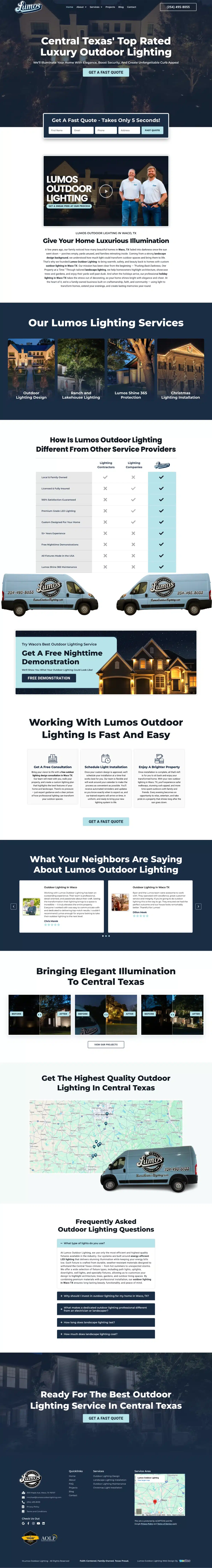 For Lumos Outdoor Lighting, we created a digital experience that radiates the same sophistication and warmth as the stunning lighting designs crafted by owner Ryan Michael and his team. The site was built to capture the magic of “pushing back darkness, one property at a time,” showcasing their expertise in outdoor, ranch, and holiday lighting with vivid imagery and seamless usability. Every page is strategically designed to inspire, inviting visitors to imagine their own home beautifully illuminated under the Texas night sky. With strong calls-to-action, elegant visuals, and refined messaging, the website reflects both craftsmanship and class. At 180 Sites, we don’t just light up websites, we create digital experiences that shine with purpose, turning bright ideas into radiant results.