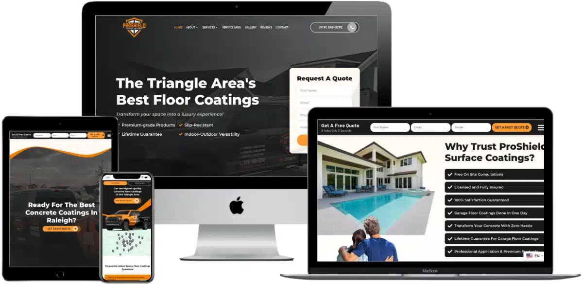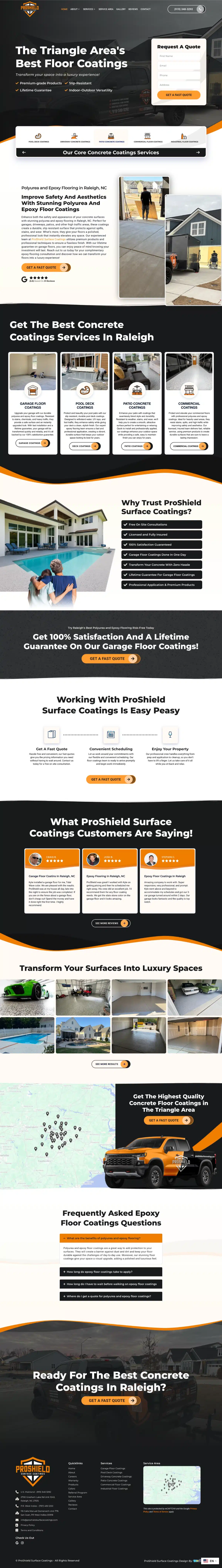A smooth and flawless floor coatings company deserves a digital home that’s just as clean and that’s exactly what 180 Sites delivered for ProShield Surface Coatings. Owned by Kyle Zotter, this Raleigh-based coatings company specializes in transforming dull concrete into durable, luxurious surfaces, so the website had to radiate that same sense of strength and sophistication. We poured equal parts design precision and strategy into every corner, building a sleek, modern layout with bold imagery, clear service breakdowns, and lead-focused flow. From garage floors to pool decks and commercial spaces, each page showcases craftsmanship and confidence without losing its down-to-earth tone. Much like ProShield’s coatings, this site was built to last, sleek, resilient, and guaranteed to turn heads. Because at 180 Sites, we don’t just design websites, we create digital surfaces that shine with the same perfection as freshly coated concrete.