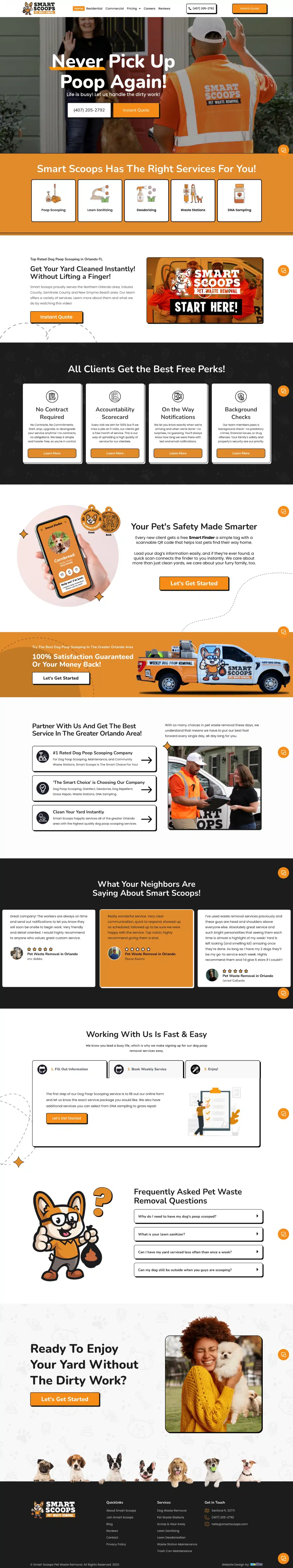 When Adam from Smart Scoops needed a website to scoop up more leads and leave the competition in the grass, we dug right in. Specializing in pet waste removal, Smart Scoops is dedicated to making yards poop-free and their customers' lives odor-free. We crafted a site that’s not only sleek and professional but also gives them a polished image as they expand into a multi-state franchise. Now, Smart Scoops has an online presence that’s as sharp as their service, turning clicks into clients and laying the groundwork for a future as spotless as the yards they maintain. With this new site, Smart Scoops is all set to leave their competition in the dust, keeping yards and businesses clean and thriving.